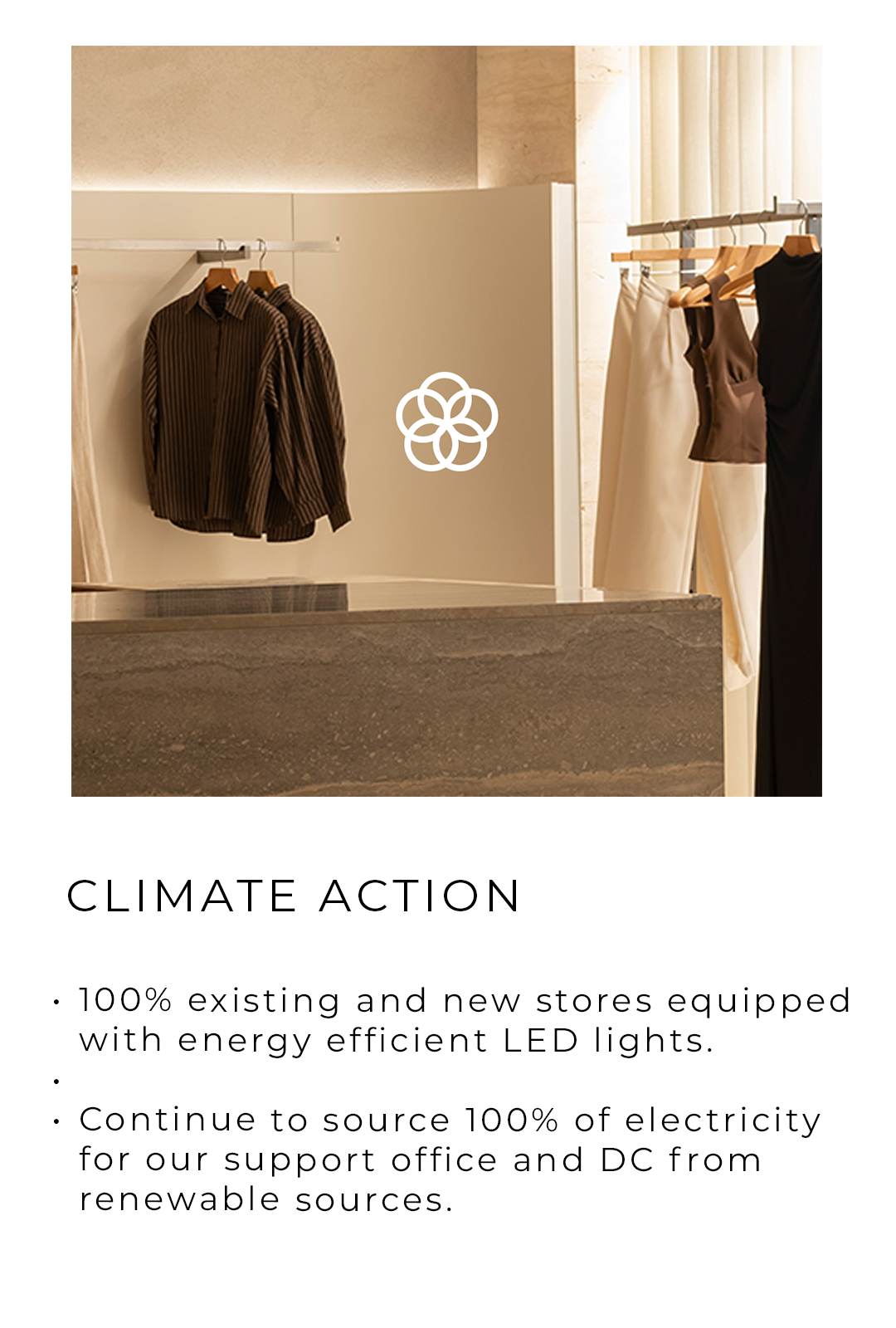 - We hold sample sales and provide textile recycling options for team members to help divert textiles from landfill.