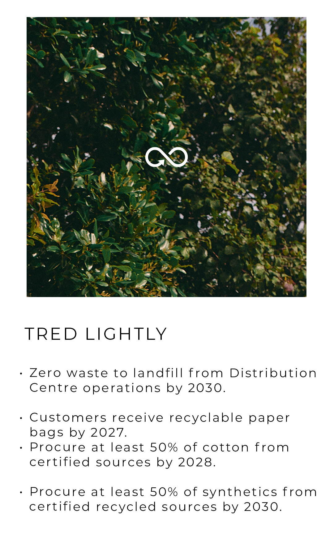 - Product swing tags and labels are produced using recycled materials and feature the Australasian Recycling Label (ARL) to help customers recycle correctly at home.