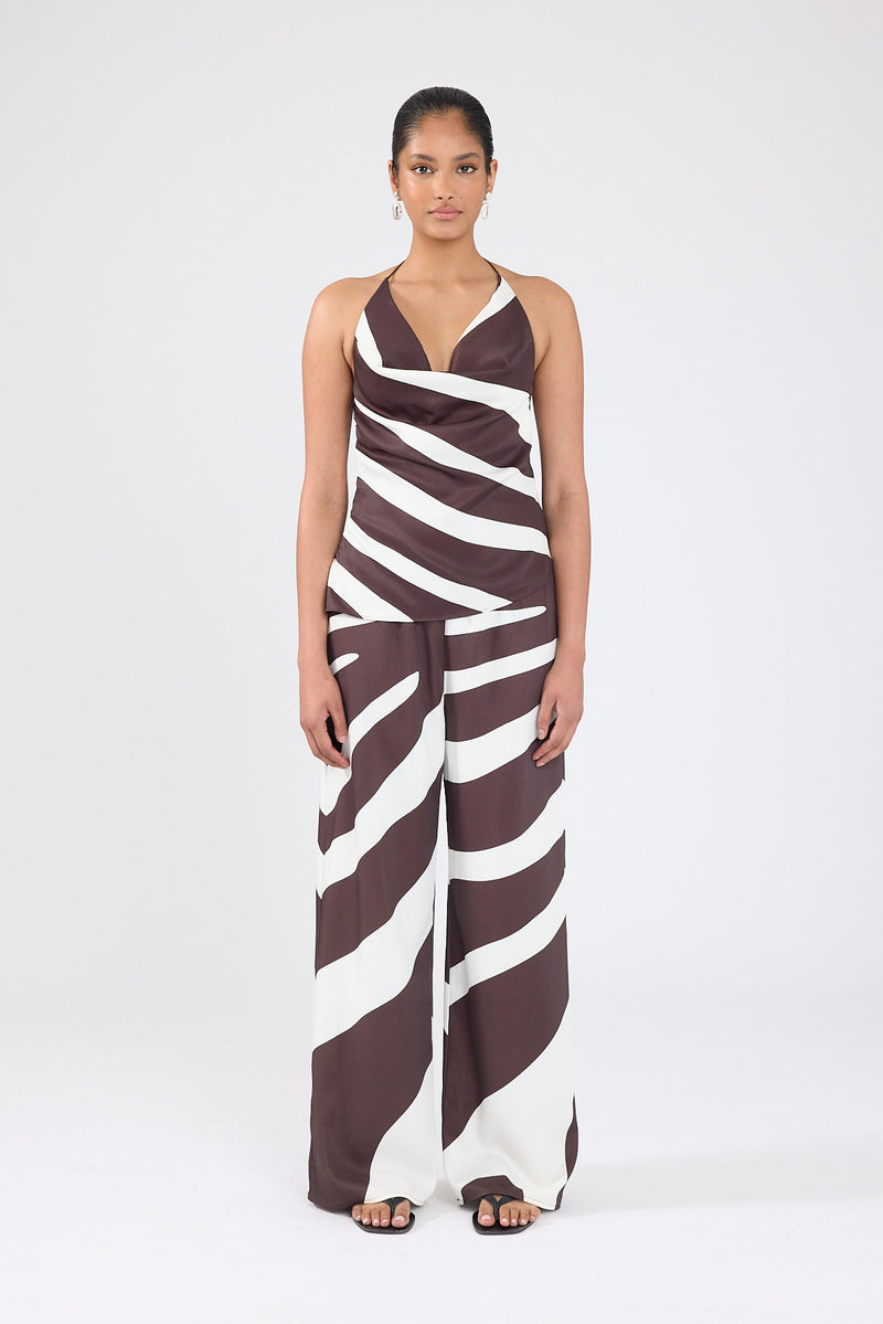 Drift Printed Cowl Neck Top Brown/White Print
