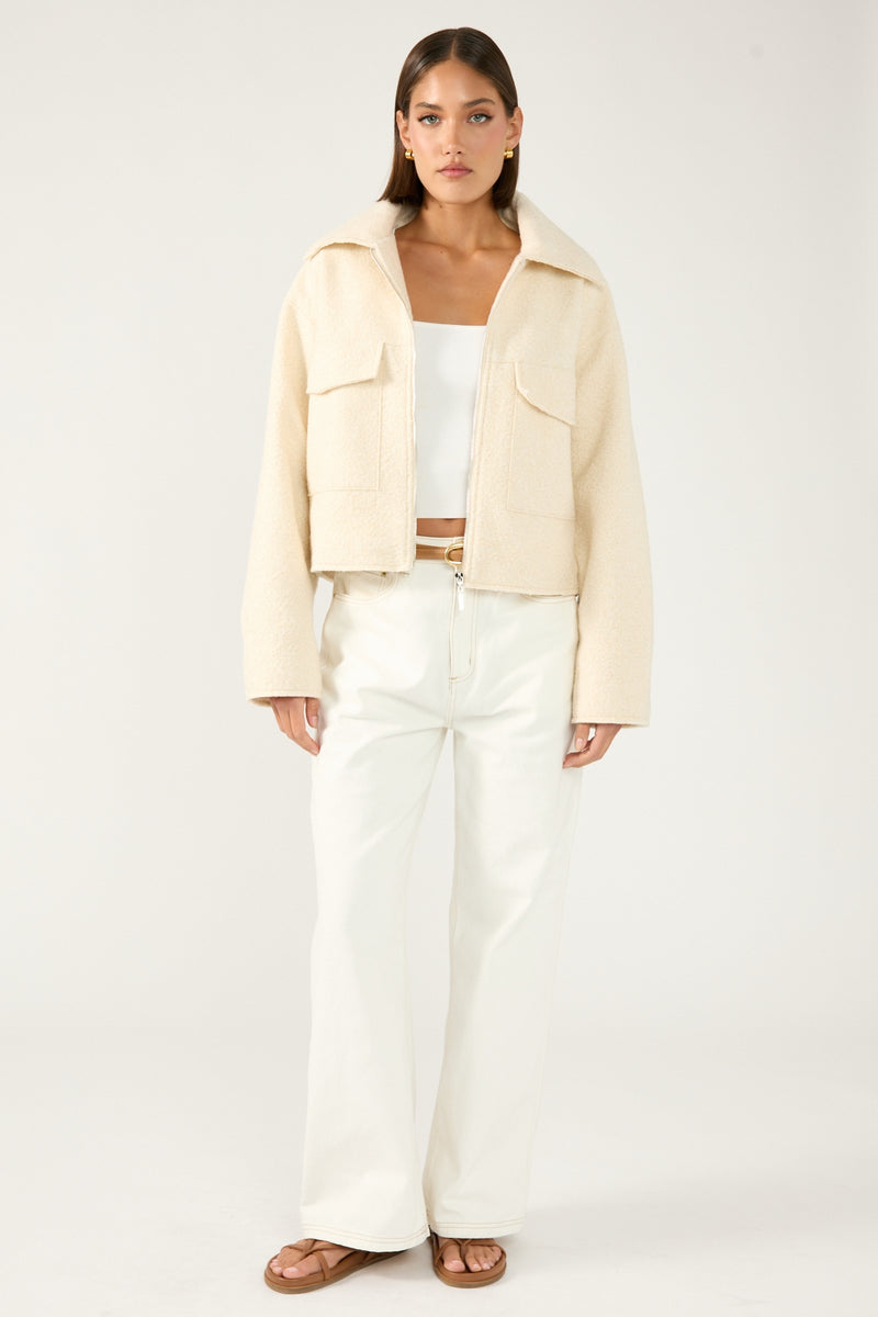 Pixie Textured Zip Up Jacket Cream